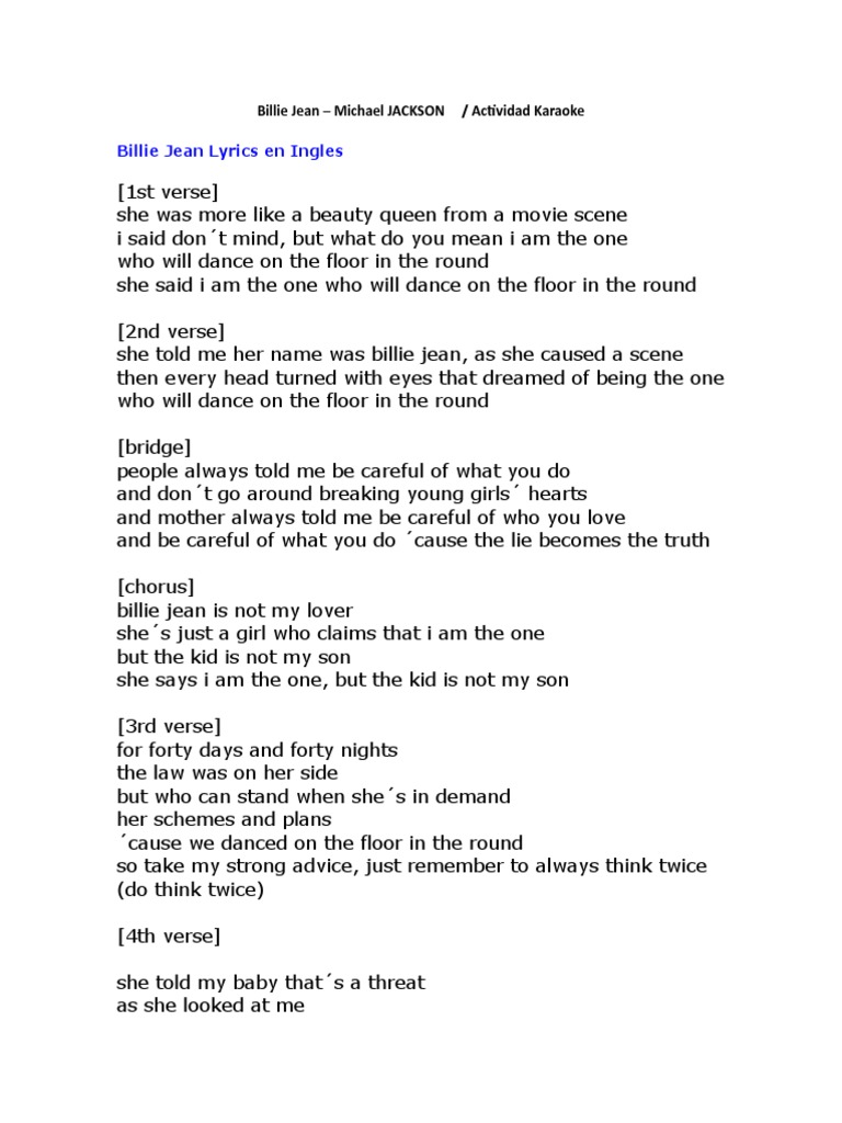 Michael Jackson Billie Jean Esl Worksheet By Jackiecr