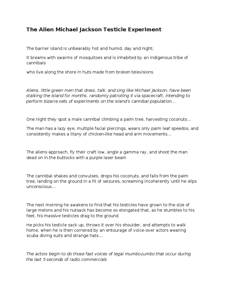 The Alien Michael Jackson Testicle Experiment Leisure Nature